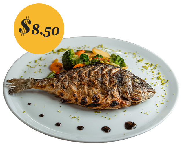Happy hourGrilled Fish...Tasty & FreshFish fillets, WITH rosemary, lemon juice, garlic, sugar